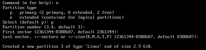 n: 새로운 파티션 추가하기