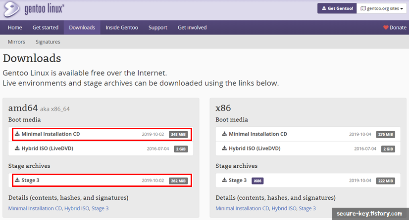 Gentoo Linux를 다운받을 수 있는 링크이다