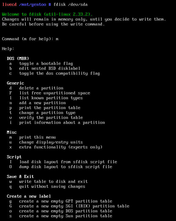 fdisk /dev/sda