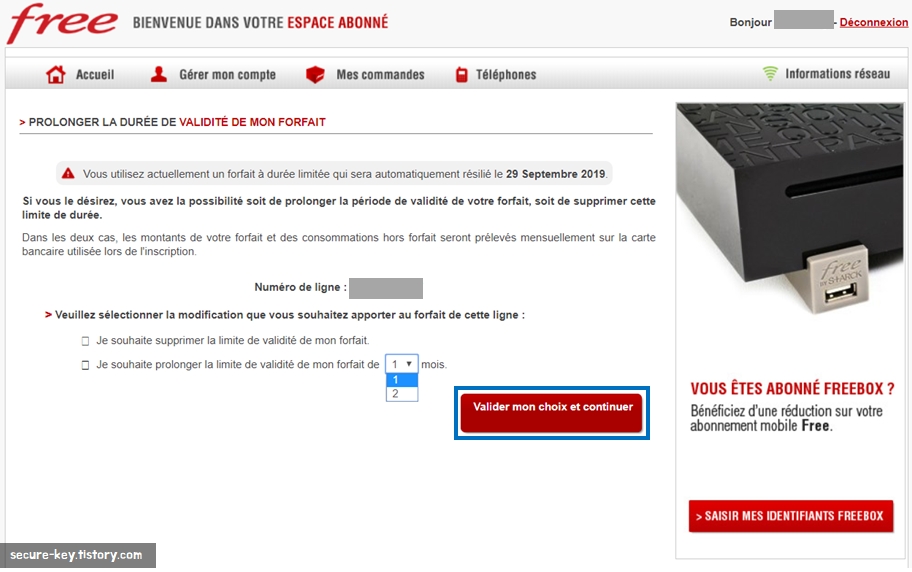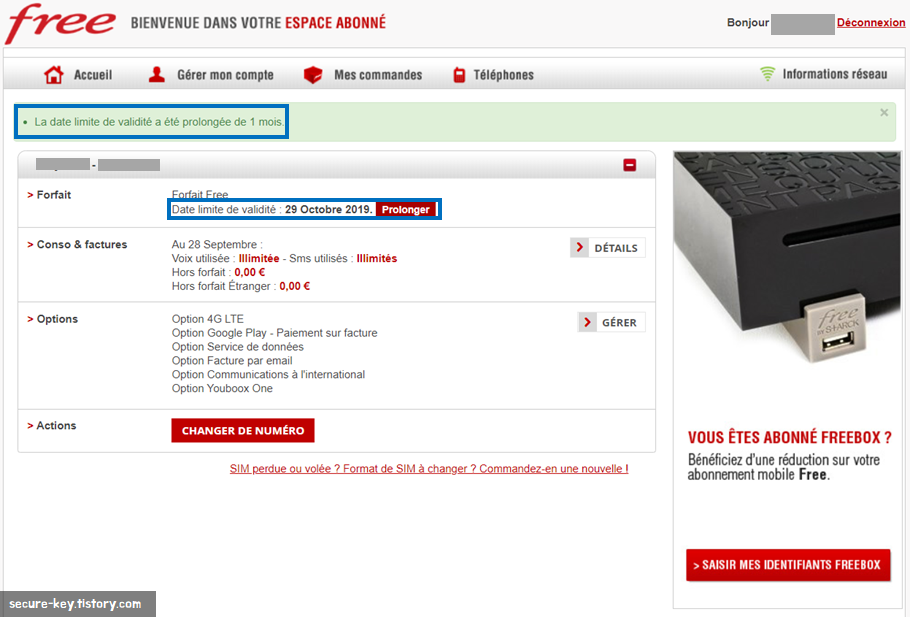 프랑스의 대표적인 통신사, Free Mobile 기간 연장하기 본문