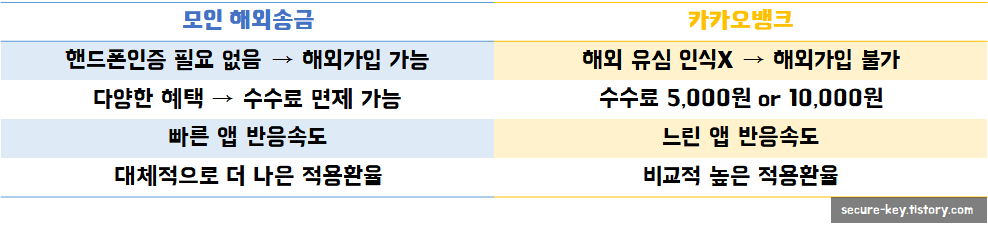 제 경험을 바탕으로 모인 해외송금과 카카오뱅크를 비교해보았습니다