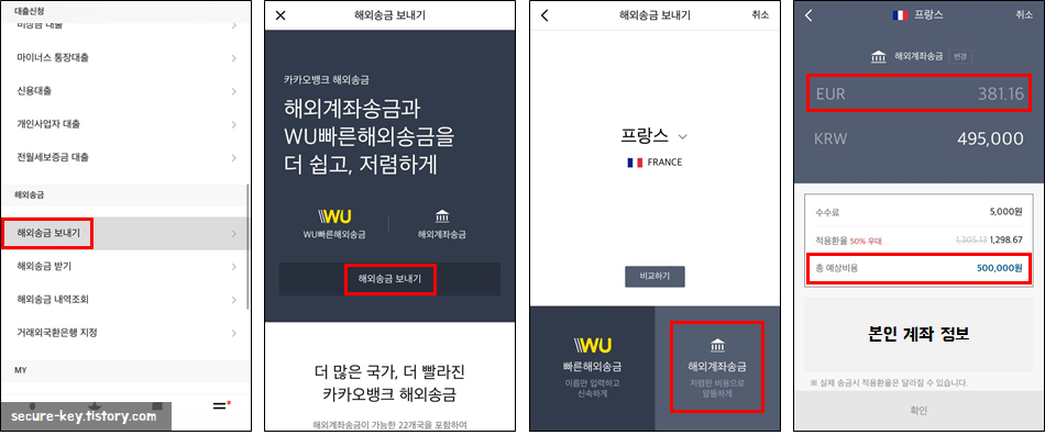따라서 저는 카카오뱅크의 '빠른해외송금'이 아닌, '해외계좌송금'으로 비교대상을 잡았습니다