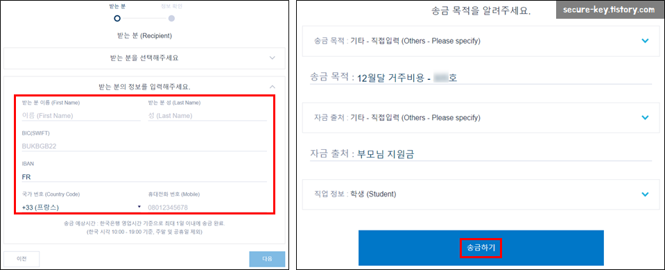 뿐만 아니라 저는 프랑스 집세도 해외송금을 통해 지불하고 있습니다