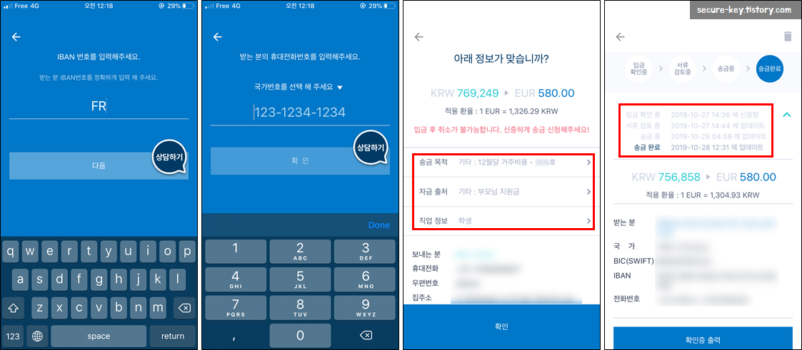 확인 버튼을 누르면 해외송금이 진행 됩니다