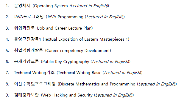 학교 사이트에 들어가서 3학년 1학기 수강신청과목 부분을 캡처해서 (한글로 되어 있었음)