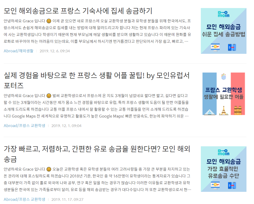 모인 서포터즈로서 활동하면서 위와 같이 2주에 한 번 씩 포스팅을 함으로써