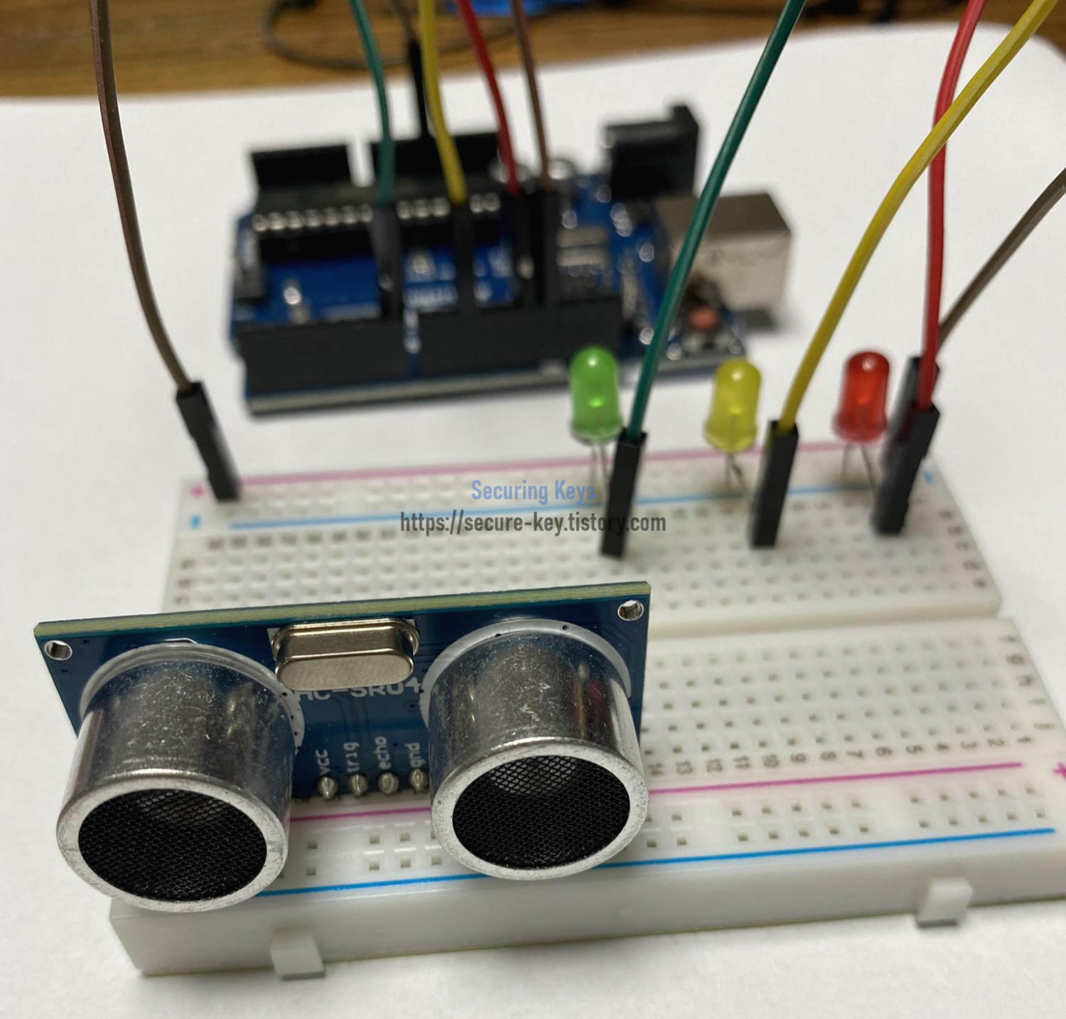장애물이 가까이 접근할수록 빨간불이 들어오고, 멀수록 초록불이 들어오게끔 설정했습니다.