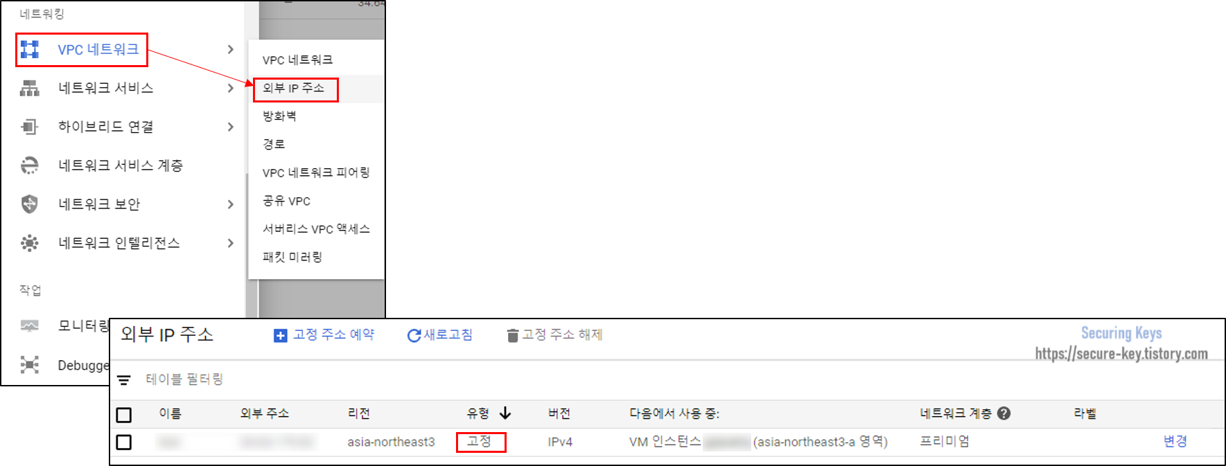 VPC 네트워크 > 외부 IP 주소 > 유형을 '고정'으로 변경