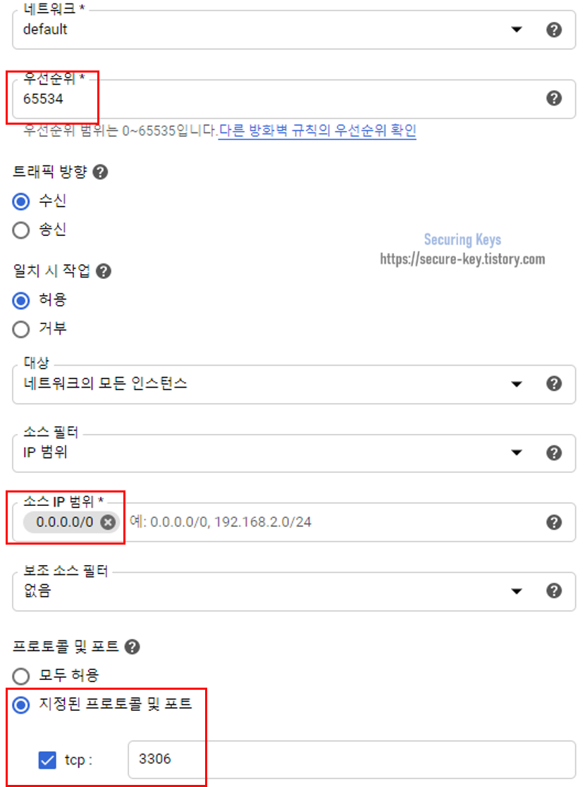 3306 포트의 방화벽 규칙을 위와 같이 만들어 주었다면,