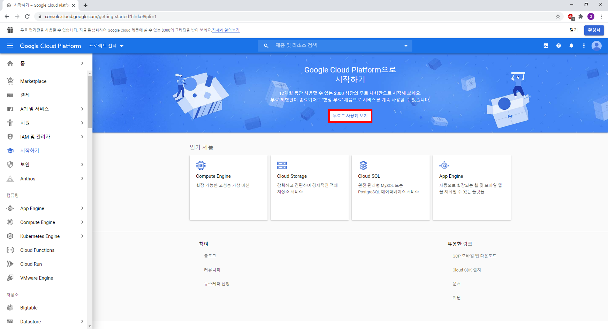 12개월 동안 $300 상당의 무료 체험판을 제공합니다