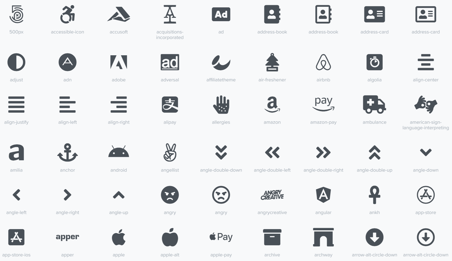 Get 1535 icons right now with FA Free, plus another 7020 icons with Pro, which also gets you another 53 icon category packs as we finish them! Our all-new SVG with JavaScript gives you all the power of SVG without the usual hassle. Ligatures for easier des