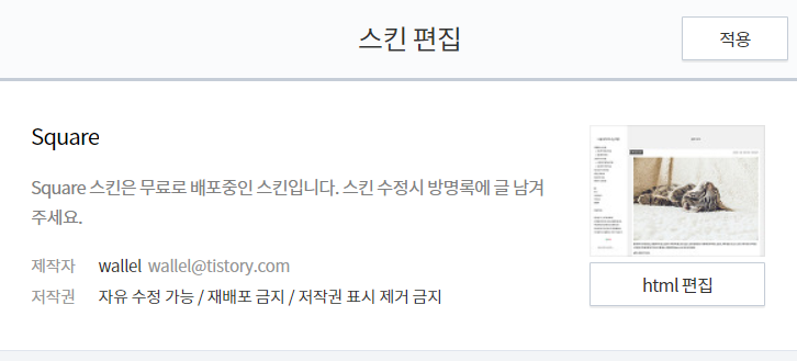 "html 편집" 혹은 "html/css 편집"과 같은 버튼을 찾을 수 있을 것입니다