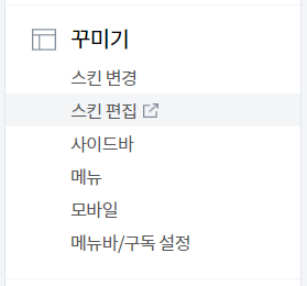 그 후, "꾸미기" 메뉴에 "스킨 편집" 메뉴로 들어갑니다