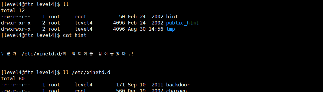 [FTZ] Level 4: xinetd.d 내 서비스를 이용한 백도어 본문