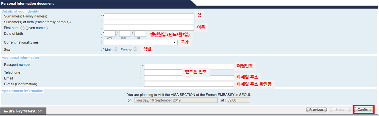 - 2019년 7월 3일: 주한프랑스대사관 영사과 면접 신청